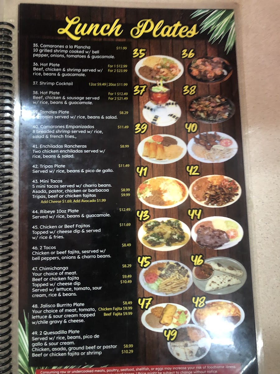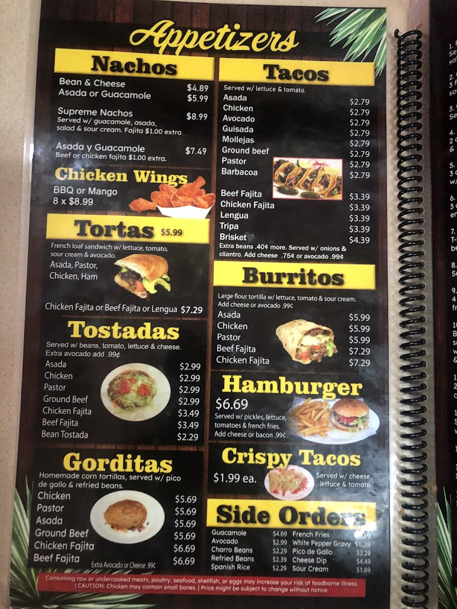 The menu doesn’t stop there; it offers Kids Plates like Chicken Fried Steak and Camarones A La Diabla, ensuring a wholesome experience for families. The assortment of Burritos, featuring options such as Asada, Chicken, and Beef Fajita, showcases the restaurant's commitment to delivering authentic Mexican flavors.